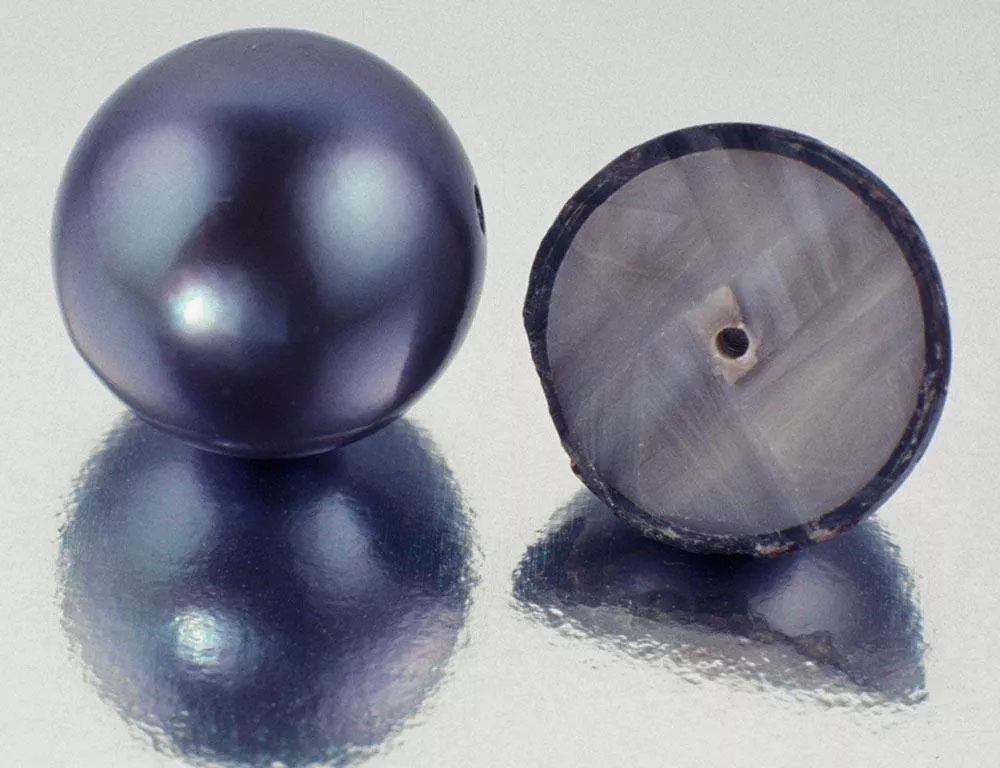 一般来讲,海水珍珠几乎都是养殖珍珠,靠人为早期往贝体里插核,才能形成又大又圆的海水珍珠: