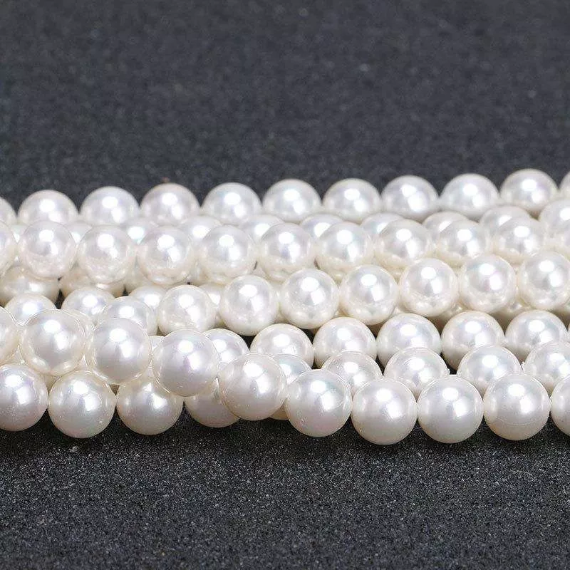 贝珠的颜色是电镀而成的,因此色泽凝重呆滞,看上去很假,没有天然珍珠颜色灵动透亮: