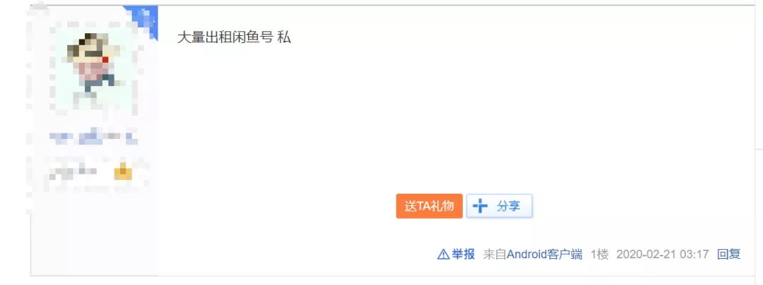 由于注册容易、平台的监督和审核机制不完善,网络上现在已经形成一条出租闲鱼号的产业链。